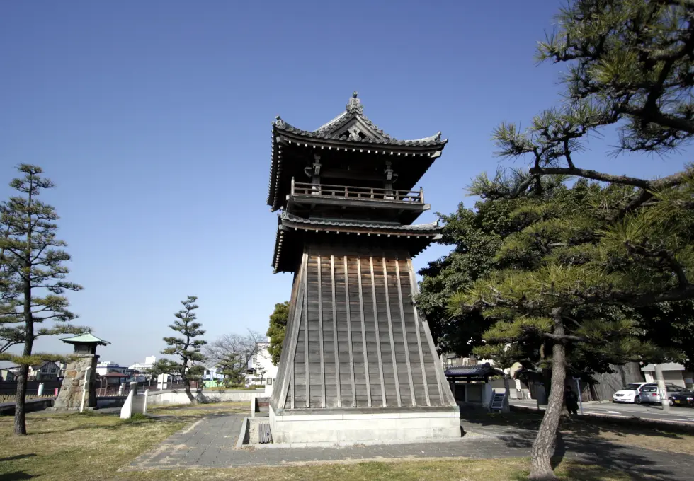 東海道をゆく旅人に時刻を知らせた時の鐘は、1676年に尾張藩主・徳川光友の命によってつくられた。現在の時の鐘は、1983年に復元されたもの。ほかにも公園内には常夜燈や船着場などが復元され、当時の雰囲気を醸し出している。江戸時代につくられた鐘は、現在も蔵福寺に大切に保管されている。