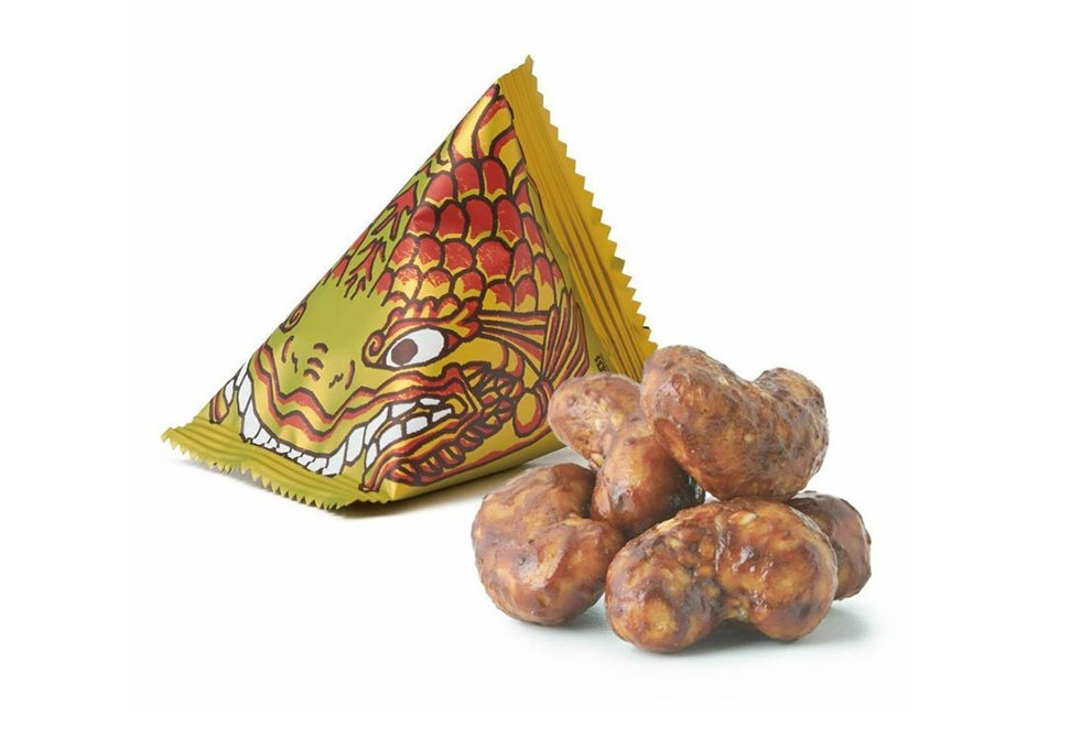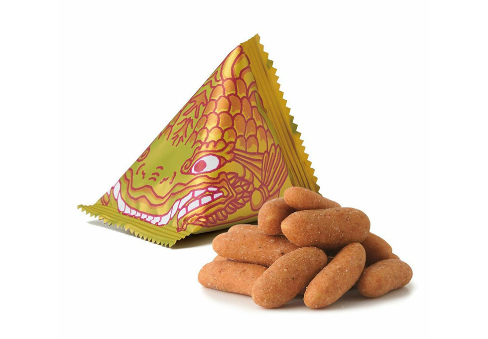 名古屋で愛される2つの味、【八丁味噌カシュー】【えびしおアーモンド】をかわいい金シャチの小袋に詰めました。