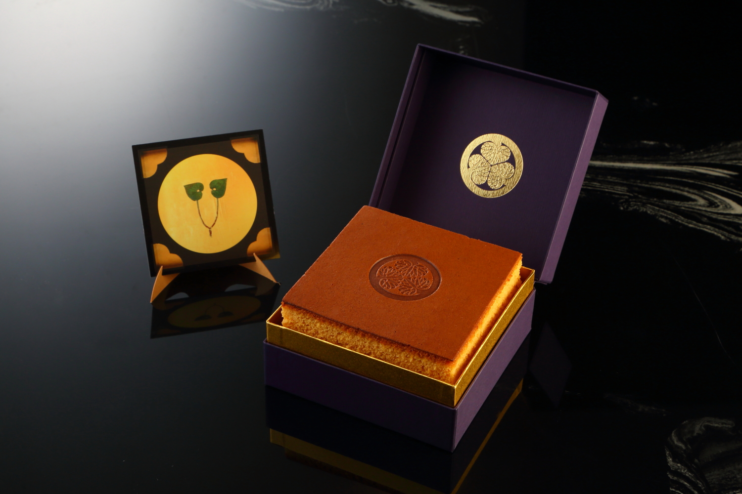 徳川家の始祖・松平家を祀る「松平東照宮」にも奉納されるカステラ。特別パッケージに加え、葵の紋の焼き印入りです。名古屋コーチンをはじめとした地元食材に、国産の高級はちみつや和三盆を使用した高級感ある一品。