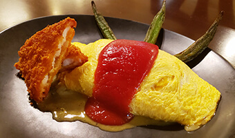 一見は普通の定番オムライスですが、口にすると名古屋名物・八丁味噌の甘味と唐辛子の刺激的な辛味のチキンライスに、隠し味のチーズがと… -