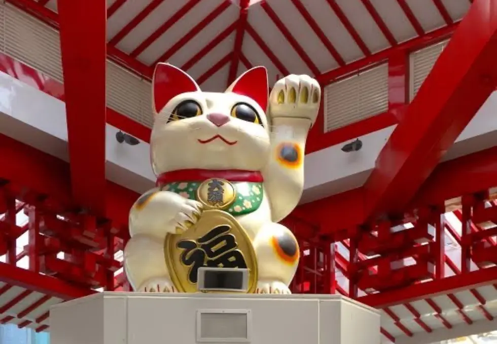 大きな招き猫は商店街のシンボル