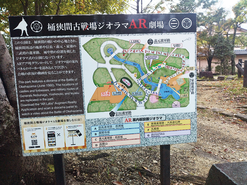 織田信長と今川義元が戦った桶狭間の戦いの激戦地。田楽坪とも呼ばれる。公園東方の“おけはざま山”から追われた今川義元がこの地で討ち取られたとされる。公園内には義元の墓碑や「馬つなぎのねずの木」、「首洗いの泉跡」がある他、信長と義元の像や地形を模したジオラマ、合戦の状況を動画視聴できるARマーカーが設けられている。