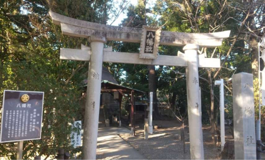 加藤清正が出陣にあたり武運長久を祈願したとされ、名古屋城築城工事の際に境内の大楠を棟木に使ったと伝えられる。清正が故郷中村に勧請した八幡社のひとつといわれる。