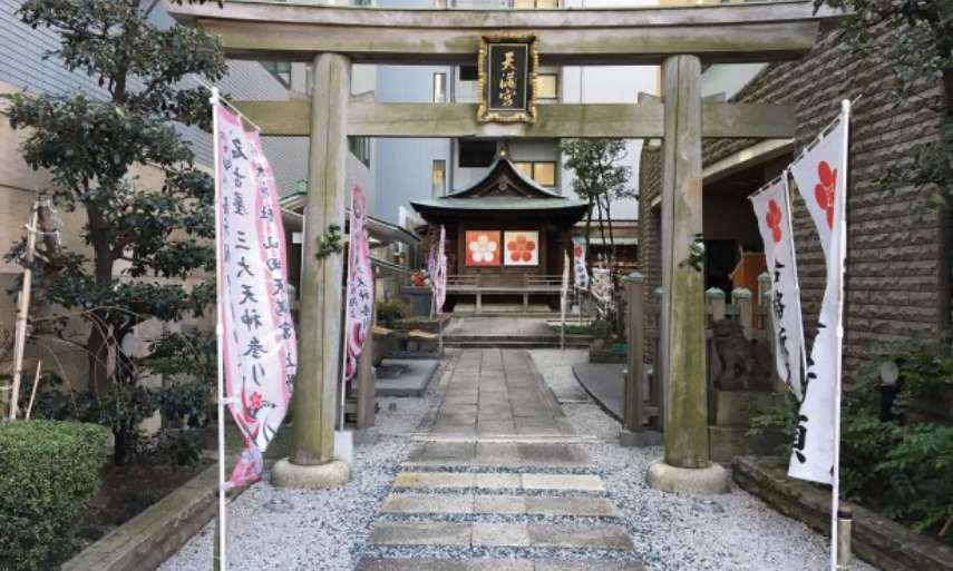 織田信長の父・信秀が那古野城内の祠に奉ったのが始まり。名古屋城築城工事の際に加藤清正は飲料水を得るために桜の樹の下に井戸を掘ったという。桜の樹はないが清正ゆかりの井戸が残る。
