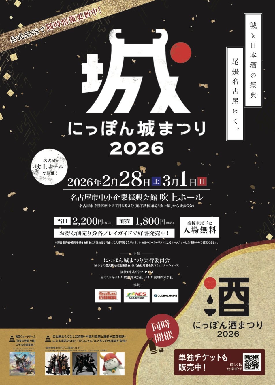 2026年2月28日(土)、3月1日(日)に名古屋市中小企業振興会館 吹上ホールにて開催される「にっぽん城まつり2026」への出展が決定いたしました!
